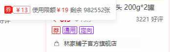 大家可以看到林家铺子 什锦水果罐头 200g*2罐原价需要19.9哦,然后我们去平台找一下京东内部优惠券看看有没有券