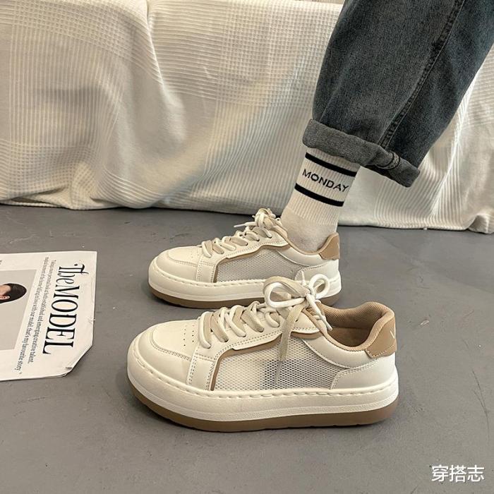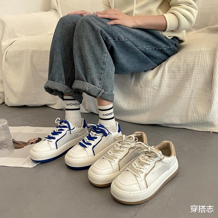 甄选PU+网纱鞋面,严选优质的鞋面,舒适不磨脚,鞋款的柔软材质,贴心呵护,亲肤柔软,透气吸汗不磨脚,温柔呵护,舒适又透气,显现用料的追求与匠心工艺,工艺全新升级,舒适有度,防滑橡胶鞋底,耐磨耐穿的轻软回弹,复古简约的系带,结实牢固,贴合脚背,潮流风格,青春有气质,日常搭配的首选。
