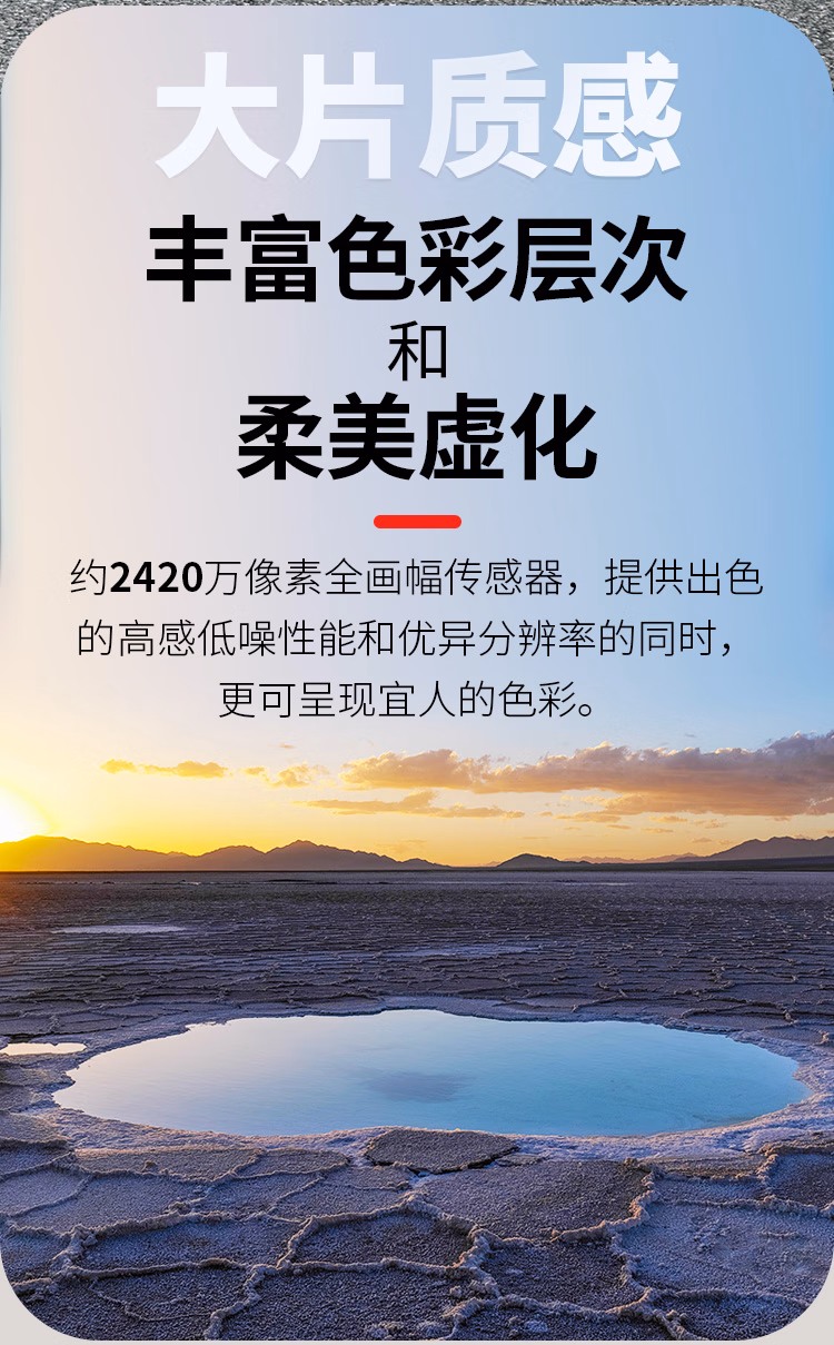 相机如期到货。外观硬朗大气,按键布局和相机棱角很有工业设计感,是我喜欢的类型。手柄处握感比大法师微单好了太多,加上套机2060的镜头后也不会觉得沉重,毕竟是微单而不是单反。试拍了几张照片,全画幅的成像比我的残幅就是要好,这价钱值了。另外有两个优点要点名表扬,一是前后拨轮的设计让操作性很棒,而且还能自定义各种按键,这一块花了一天了还在摸索中,其二就是翻转屏真的是一个用过就无法丢弃的功能,视频自拍跟各种角度和机位拍照都很需要,这块屏幕显示效果跟触摸操作性也很棒。其他性能方面还在体验中,后续再追评吧,非常满意,好评!