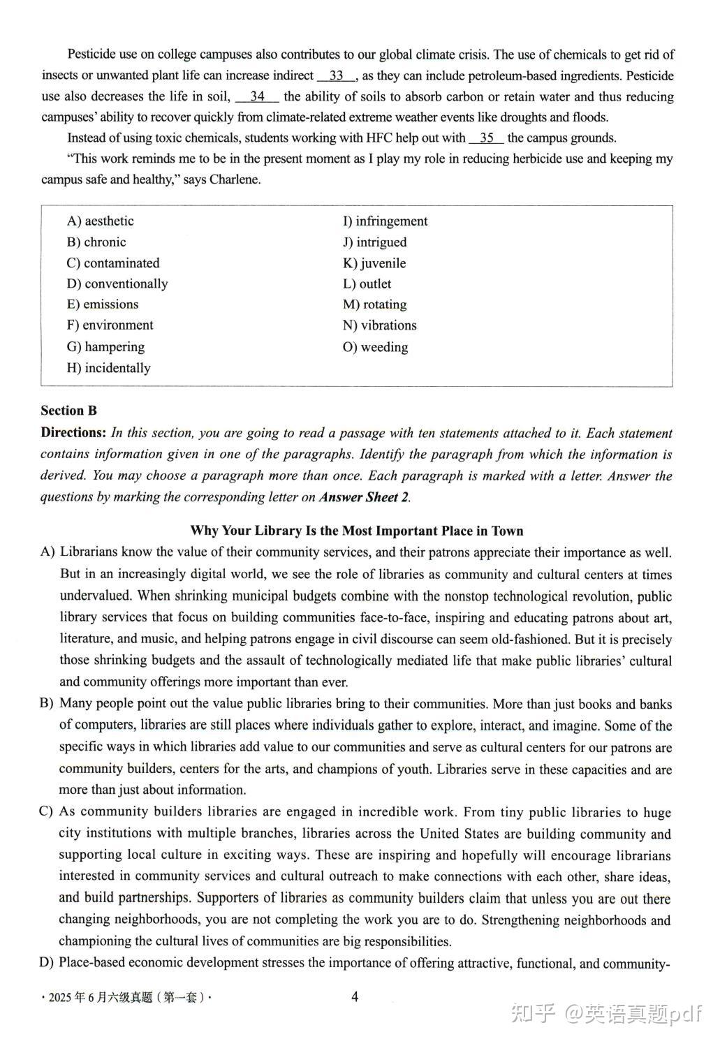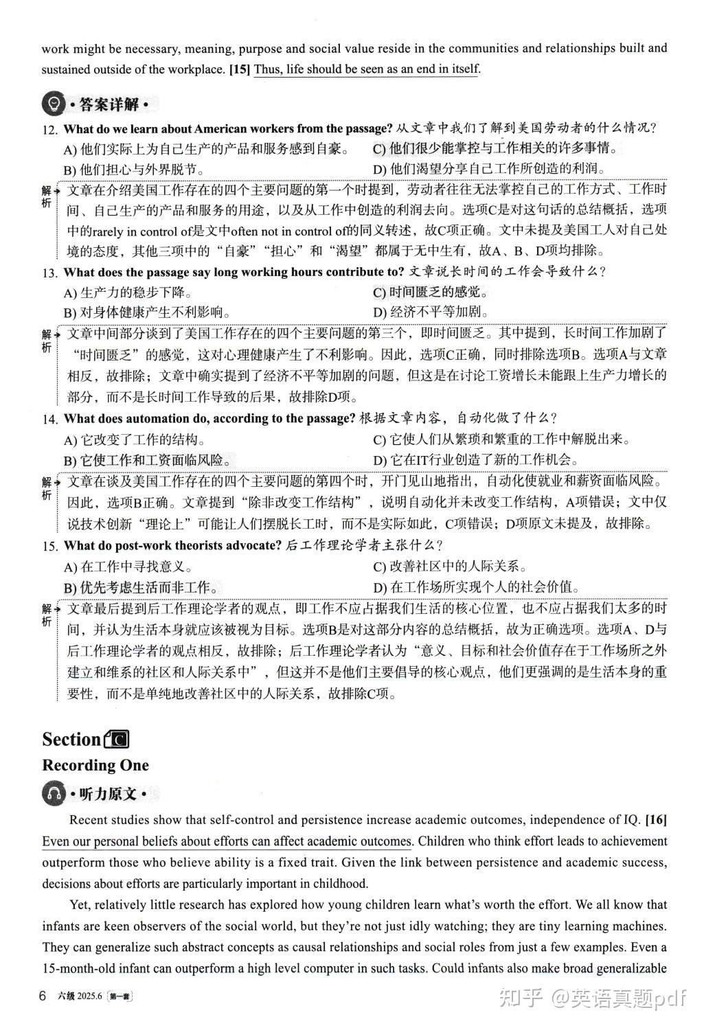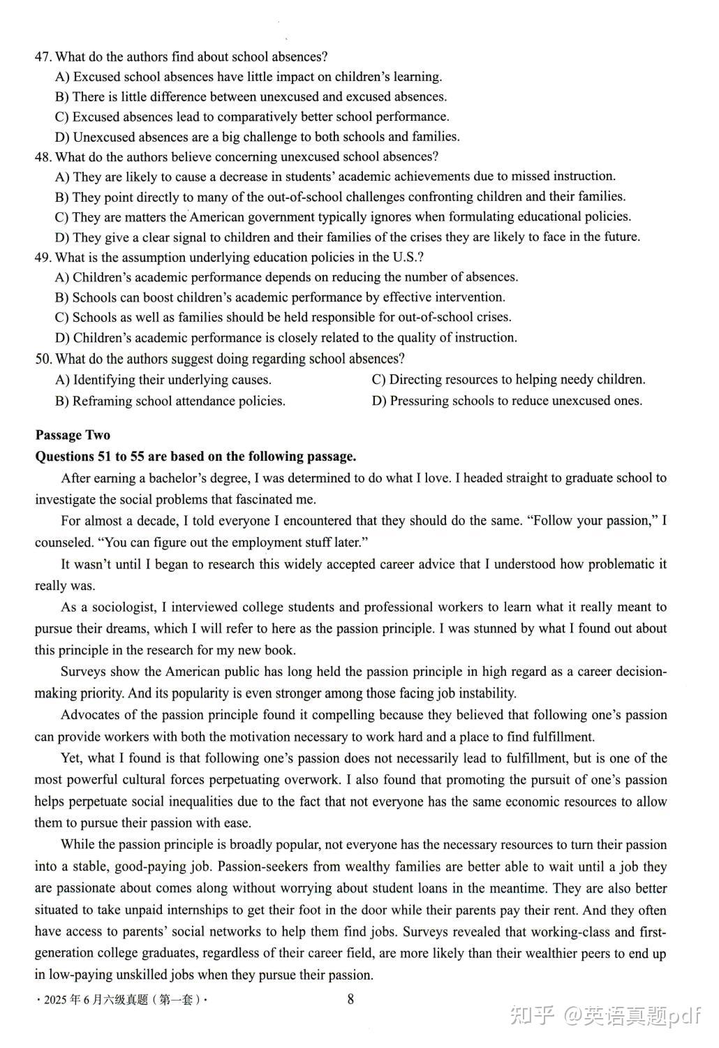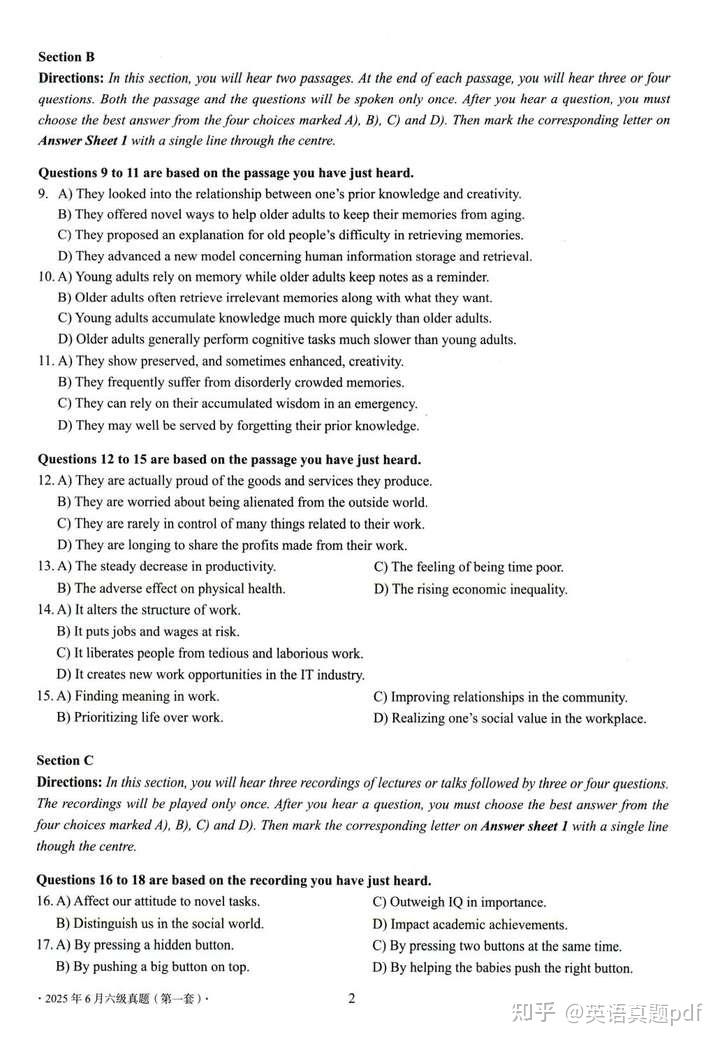 2025年6月大学英语六级真题第一套已经整理好了,需要下载打印的同学可以网盘下载链接: