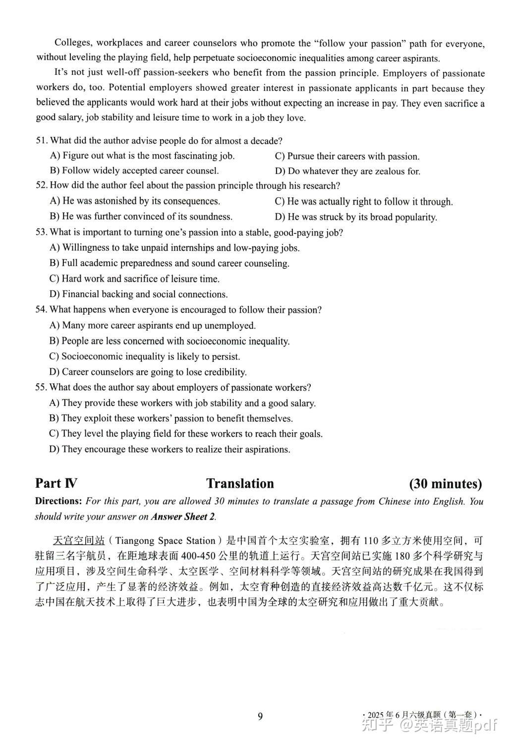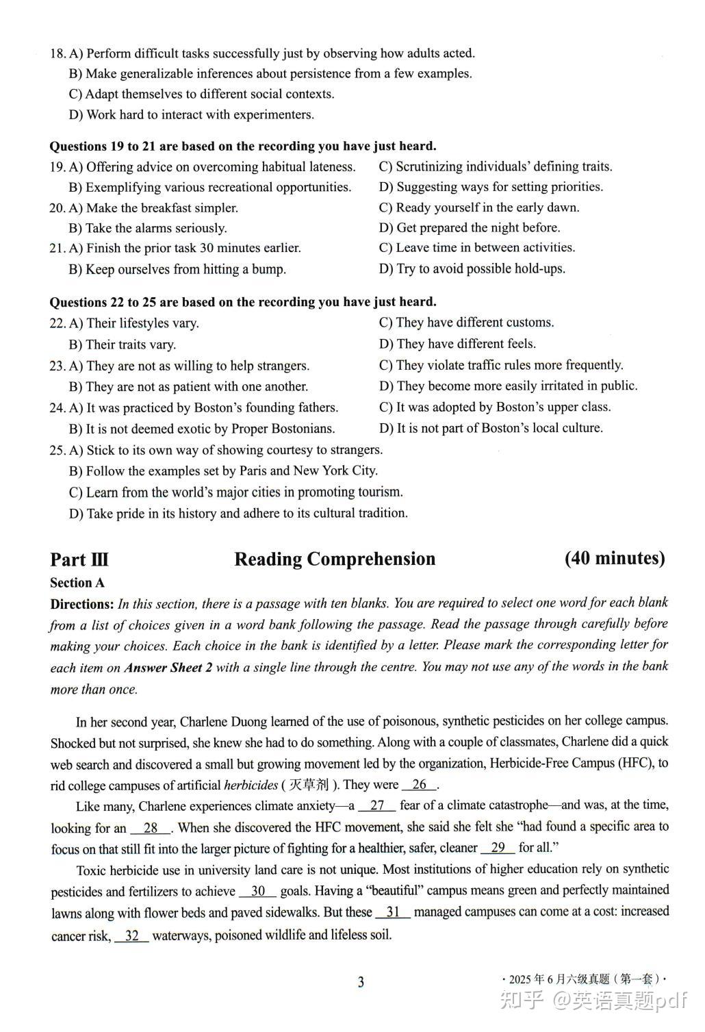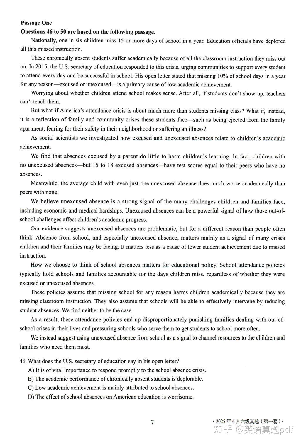 2025年6月大学英语六级真题第一套已经整理好了,需要下载打印的同学可以网盘下载链接: