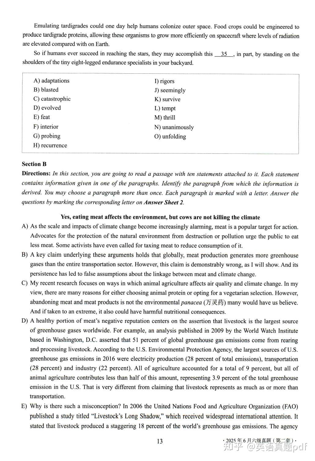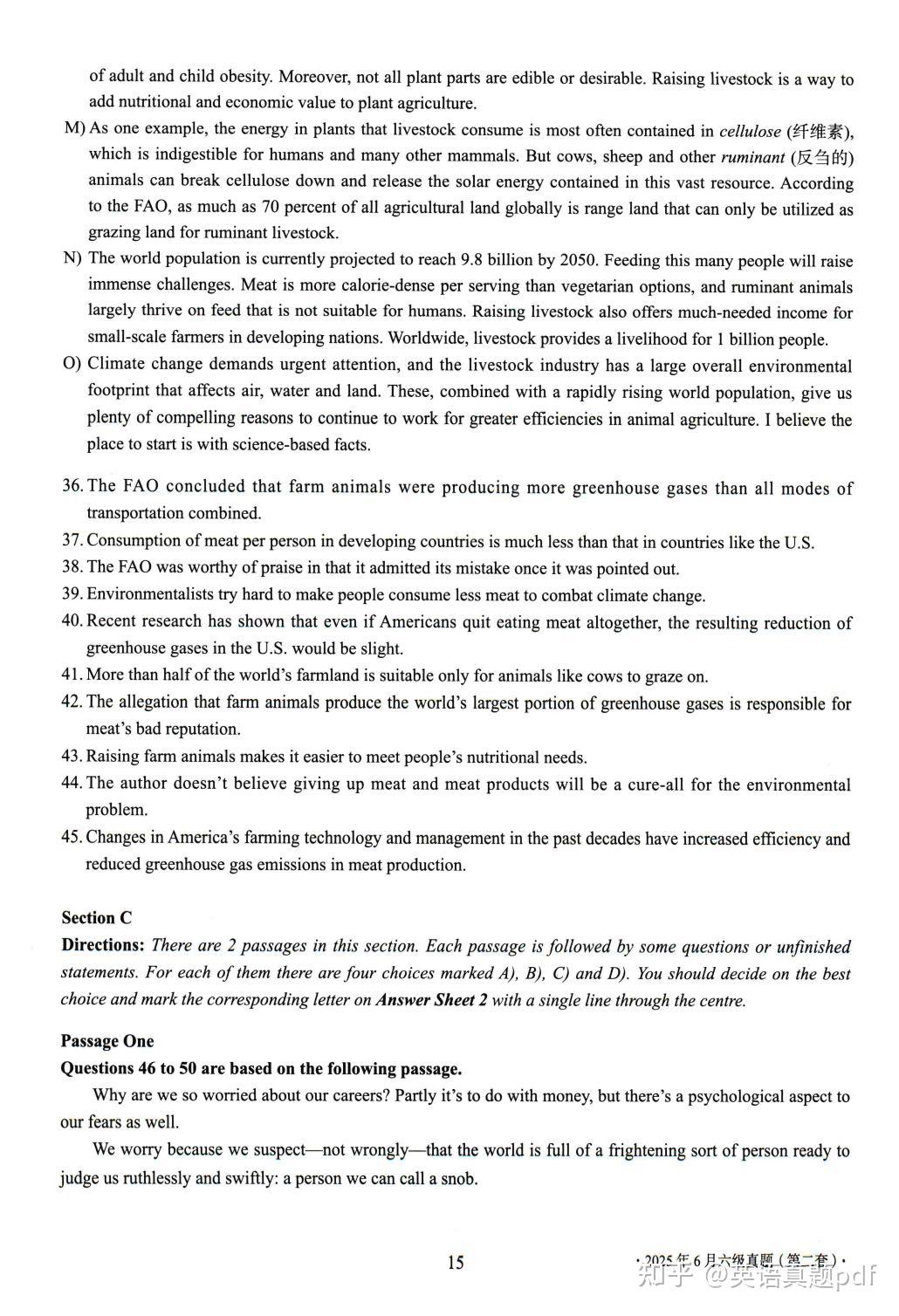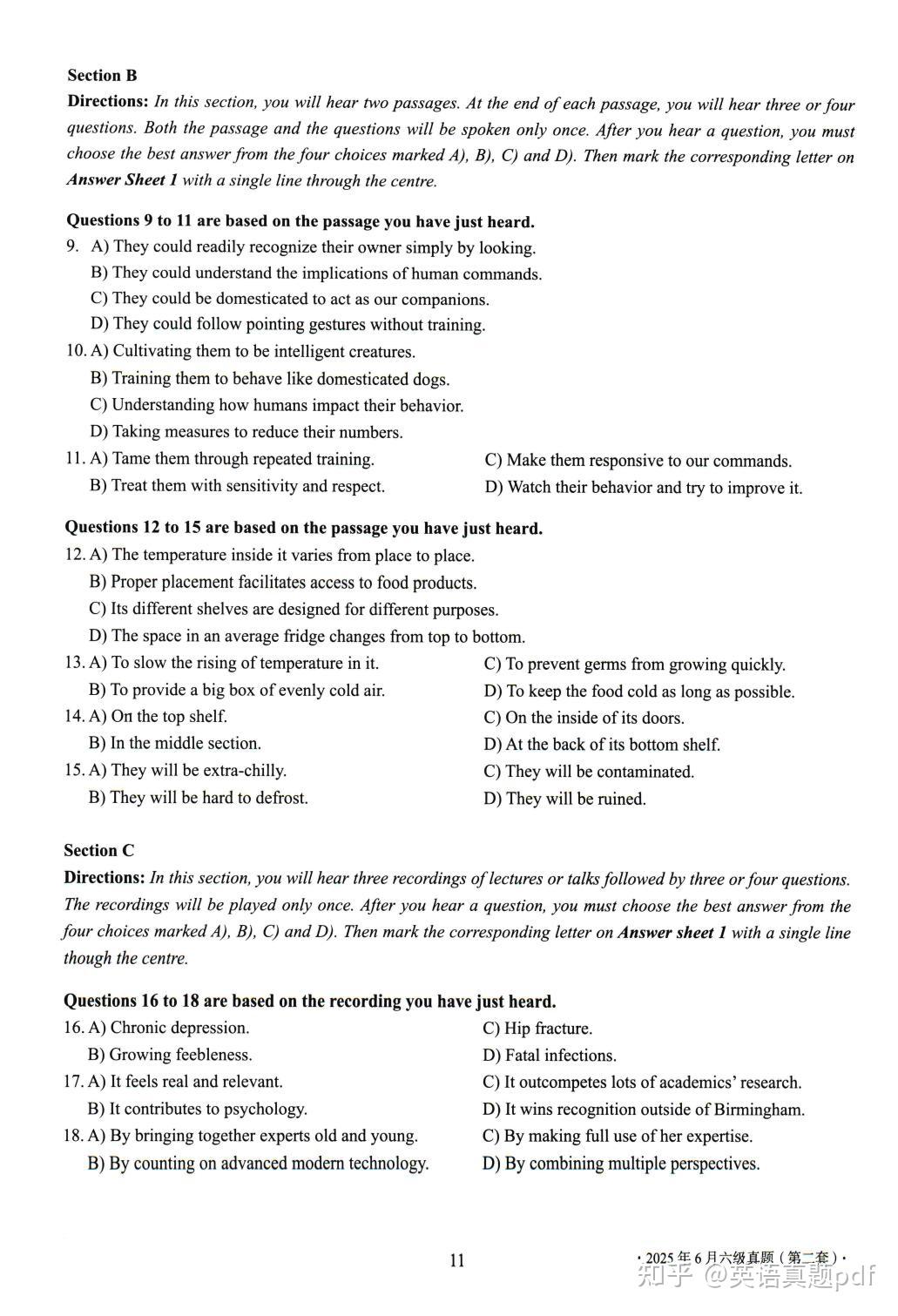 2025年6月大学英语六级真题第二套已经整理好了,需要下载打印的同学可以网盘下载链接: