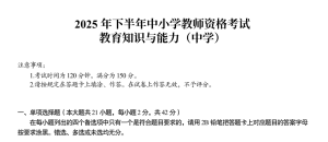 2025下半年中学教资笔试科目二《教育知识与能力》真题及答案完整网盘电子版下载