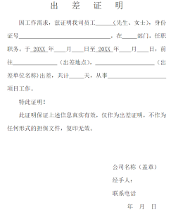 出差证明模板word免费下载