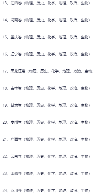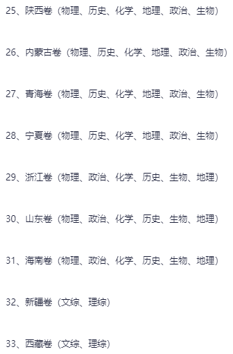 新课标卷:适用地区:云南、河南、新疆、山西。适用卷型:语文、数学、英语为新课标Ⅱ卷,其他科目为新课标卷
